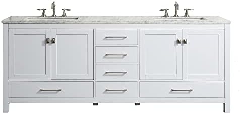 Spa Bathe Calumet 75 In White Undermount Double Sink Bathroom Vanity With White And Grey Veins Engineered Stone Top Lowes Com Double Sink Bathroom Vanity Engineered Stone Countertops Double Sink Bathroom from i.pinimg.com The storehouse features an italian white carrara marble countertop, 2 undermount porcelain sinks. This bathroom vanity has immense storage that will help you keep your bathroom neat and organized. Eviva aims to completely satisfy customers by providing competitive prices and excellent quality. Eviva aberdeen comes with a double layer italian. The storehouse features an italian white carrara marble countertop, 2 undermount porcelain sinks. Check out our double bathroom vanity selection for the very best in unique or custom, handmade pieces from our home & living shops. 84 inch double bathroom vanity if you are planning the bath renovation or a general repair at your home, you are going to need to look for a vanity style storage space can be set with standard doors and drawers. Eviva aberdeen 84 inch gray transitional double sink bathroom vanity with white carrara marble countertop and undermount porcelain sinks.