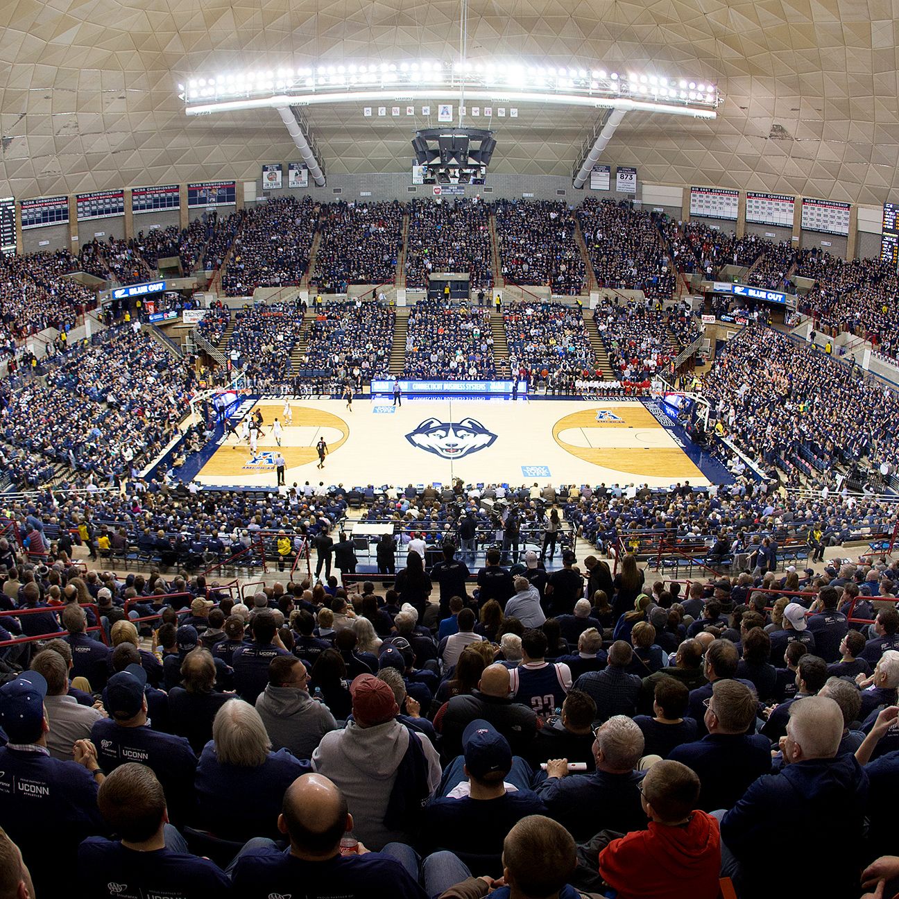Gampel is an arena that does not have a jumbotron over center court.